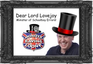 Dear Lord Tim Lovejoy – Minister of Schoolboy Errors