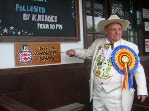 DJ Dick Knowles organised the inauguration of Lanzarote Loony Headquarters by Party leader Howling Laud in The Bulldog Bar in Costa Teguise. The Bulldog Bar is run by Mick and Sarah who would love to see all Loony members when they holiday there.
