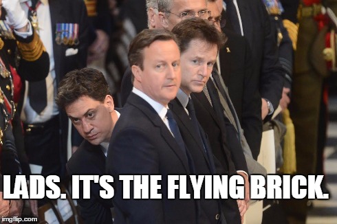2015_1704_Brick_in_SunNick the Flying Brick has promised to give three kitchens to all houses in Doncaster North as part of his main policy for the 2015 General Election. This has been extensively covered in the >>SunNation<< published on the 10th April.