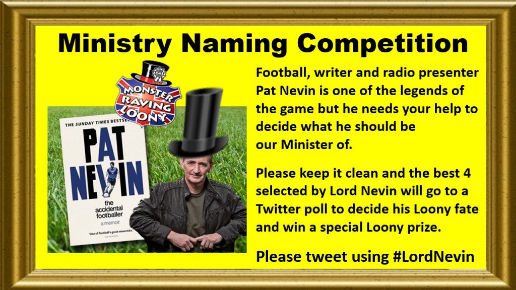 Visit our Twitter account to help Lord Pat Nevin decide his OFFICIAL Loony Ministry by Sunday 2nd October and you may win a special Loony Prize!
