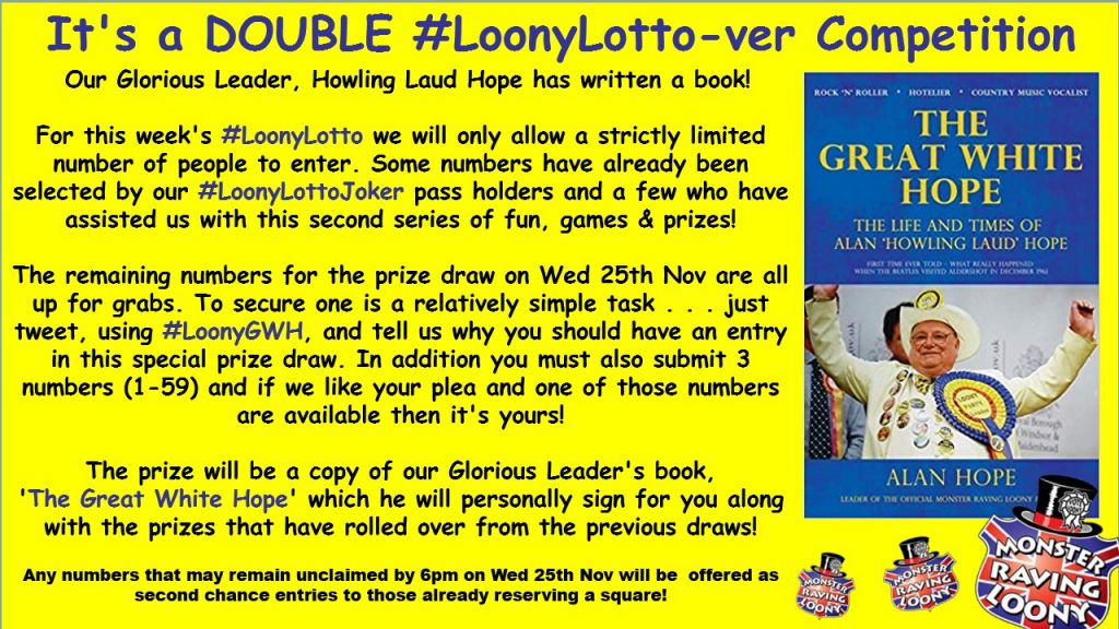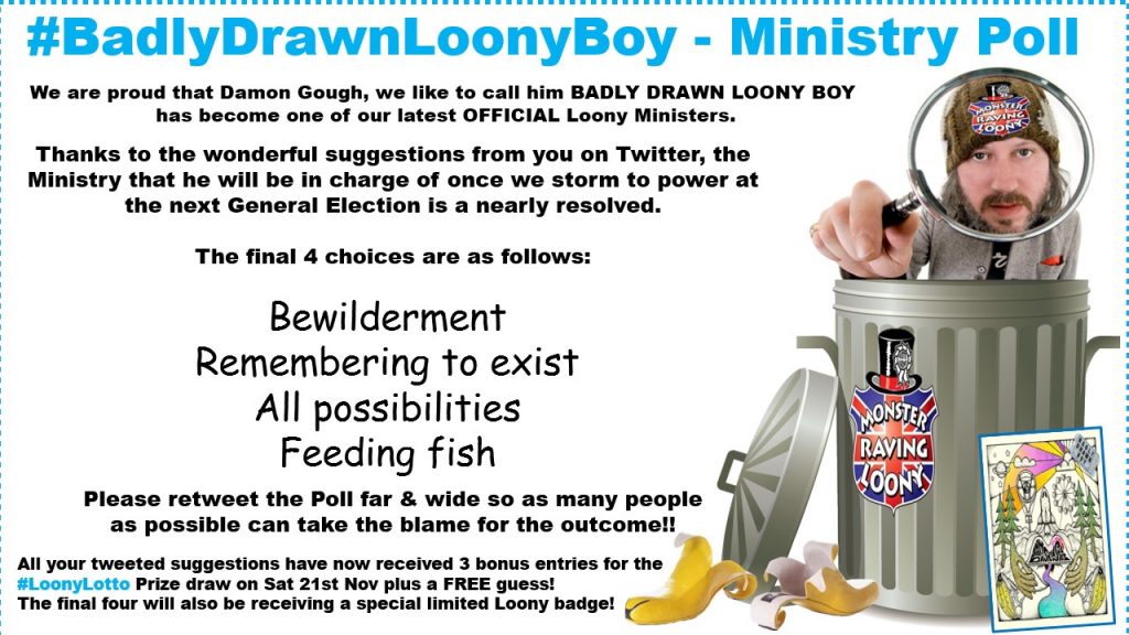 As ever, the OFFICIAL Monster Raving Loony party appoints only the finest of people to hold one of our many Ministerial positions . . . however sometimes we can’t quite select the correct one so are giving the good people on Twitter the chance to suggest a Ministry for the one & only (oops, no,… Read More